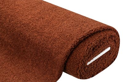Lammfell-Imitat "Island", Farbe: rostbraun, mit glatter Rückseite, Florhöhe: 8 mm, Scheuerwert: 50.000 Touren, Lichtechtheit: 5, Pilling: 3–4, Breite: 150 cm, Gewicht: ca. 500 g/m². Material: 100 % Polyester.