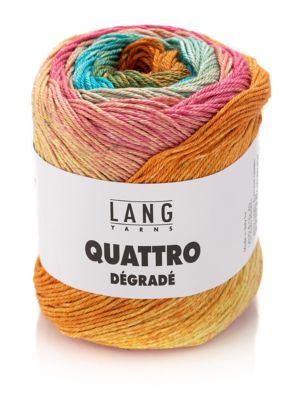 Lang Yarns Quattro Dégradé. Einzigartige Farbenspiele warten mit diesem Farbverlaufsgarn des Schweizer Markenherstellers Lang Yarns auf Sie. Zudem begeistert das mercerisierte Baumwollgarn mit dezentem Glanz. Sehr strapazierfähig und maschinenwaschbar, ist Lang Yarns Quattro Dégradé perfekt für die Herstellung von Sommerkleidung und -accessoires für Groß und Klein. 240 Meter Lauflänge garantieren ein ausgiebiges Strick- und Häkelvergnügen. Am besten, Sie suchen sich gleich Ihren Favoriten aus!