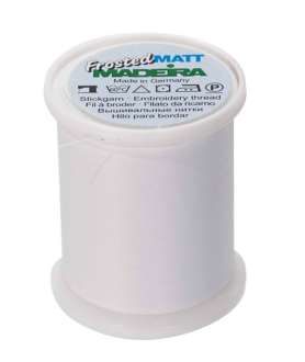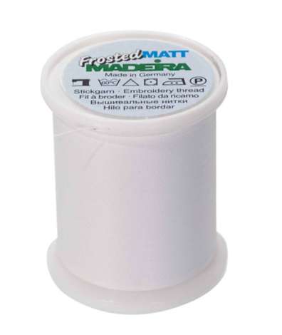 MADEIRA Stickgarn "Frosted Matt", Farbe: bright white, Stärke: 40, Nadelstärke: 75–80, 500 m pro Spule. Material: 96 % Polyester, 4 % Keramik.