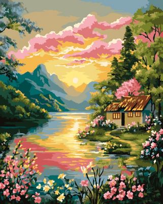 Malen nach Zahlen auf Leinwand "Abendrot am Waldsee", 40 x 50 cm