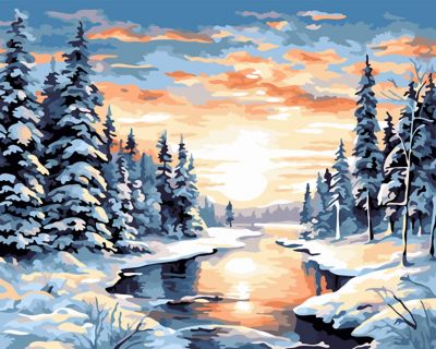 Malen nach Zahlen auf Leinwand "Fluss im Winter", 50 x 40 cm