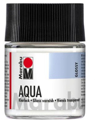 Marabu Aqua-Klarlack auf Wasserbasis, wetterfest, zum farblosen Lackieren von vielen verschiedenen Untergründen wie Holz, Leinwand, Tontöpfe uvm., Trocknungszeit: ca. 30 Minuten, Farbe: transparent-glänzend, Inhalt: 50 ml.
