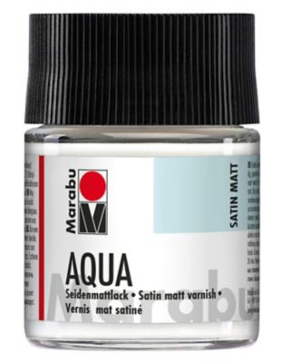 Marabu Aqua-Seidenmattlack auf Wasserbasis, wetterfest, zum farblosen Lackieren von vielen verschiedenen Untergründen wie Holz, Leinwand, Tontöpfe uvm., Trocknungszeit: ca. 30 Minuten, Farbe: transparent-seidenmatt, Inhalt: 50 ml.
