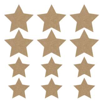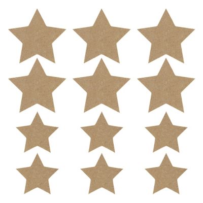 Sterne aus MDF, zum Bemalen und Verzieren, Farbe: natur, Stärke: 3 mm, Größen: 6 cm und 8 cm, Inhalt: je Größe 6 Stück = 12 Stück.