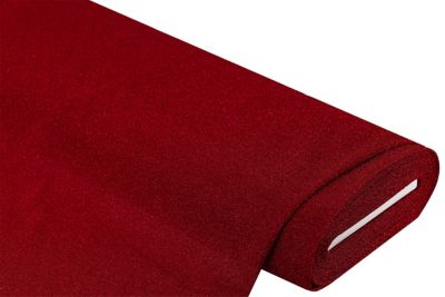 Metallic-Jersey, Farbe: rot, querelastisch, Breite: 150 cm, Gewicht: ca. 90 g/m². Material: 65 % Polyester, 35 % Polyethylen.