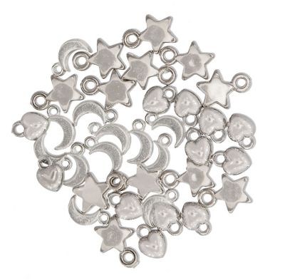 Mini-Anhänger, Farbe: silber, Größe: 5–11 mm, Inhalt: 36 Stück, 3-fach sortiert. Material: Kunststoff.