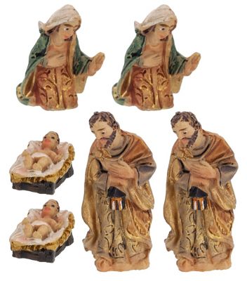 Miniatur-Krippenfiguren "Heilige Familie" aus Polyresin, perfekt für Miniatur-Krippen, Größe: 0,8–3,0 cm, Inhalt: 2 Sets mit jeweils Maria, Josef und Jesus in der Krippe = 6 Teile.