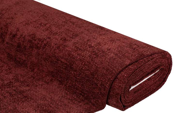 Möbel-Chenille, Farbe: weinrot-melange, Scheuerbeständigkeit: 60.000 Touren, Lichtechtheit: 5, Breite: 140 cm, Gewicht: ca. 490 g/m². Material: 100 % Polyester.