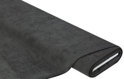 Möbel-Cord, Farbe: dunkelgrau, Rippenbreite: 4 mm, mit weißem textilem Untergewebe, Scheuerwert: 40.000 Touren, Lichtechtheit: 4, Breite 140 cm, Gewicht: ca. 280 g/m². Material: 90 % Polyester, 10 % Polyamid.
