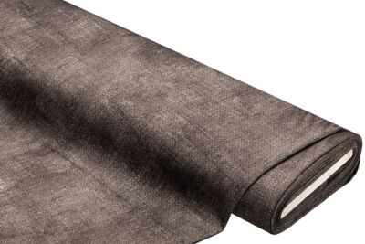 Möbel-Samt, Farbe: dunkelgrau-melange, mit samtiger Oberfläche und brauner Kaschierung (Filz), Scheuerwert: 30.000 Touren, Lichtechtheit: 4, Breite 140 cm, Gewicht: ca. 270 g/m². Material: 100 % Polyester.