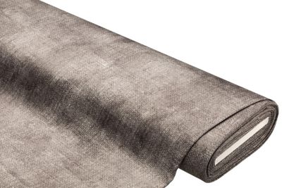 Möbel-Samt, Farbe: grau-melange, mit samtiger Oberfläche und brauner Kaschierung (Filz), Scheuerwert: 30.000 Touren, Lichtechtheit: 4, Breite 140 cm, Gewicht: ca. 270 g/m². Material: 100 % Polyester.