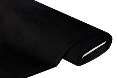 Möbel-Samt "Luxor", Farbe: schwarz, mit samtiger Oberfläche und schwarz gewirkter Rückseite (leicht querelastisch), Scheuerwert: > 50.000 Touren, Lichtechtheit: 4, Breite 140 cm, Gewicht: ca. 320 g/m². Material: 100 % Polyester.