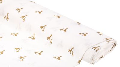 Mit diesem schönen Musselin verwandeln Sie das hiesige Kinderzimmer im Nu in eine waschechte Safari-Zone! Egal, ob als Kinderbettdecke, Betthimmel, Regalvorhang oder Kissenbezug – Nähstücke aus dem Kinderstoff mit Tieren werden absolute Hingucker, die Ihr kleiner Giraffen-Fan lieben wird! Auch süße Kindermode wie Strampler, Hosen, Shirts und Kleider aus dem Baumwollstoff sehen toll aus und sind herrlich bequem. Gleich bestellen und zusammen mit Ihrem Nachwuchs auf Stoff-Safari gehen!