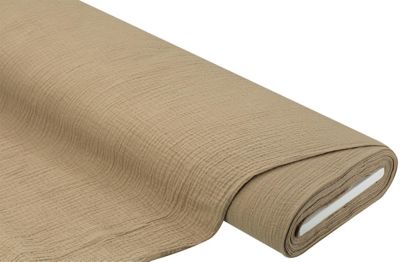 Musselin/Doppel-Gaze, Farbe: leinen, Breite: 130 cm, Gewicht: ca. 120 g/m². Material: 100 % Baumwolle.