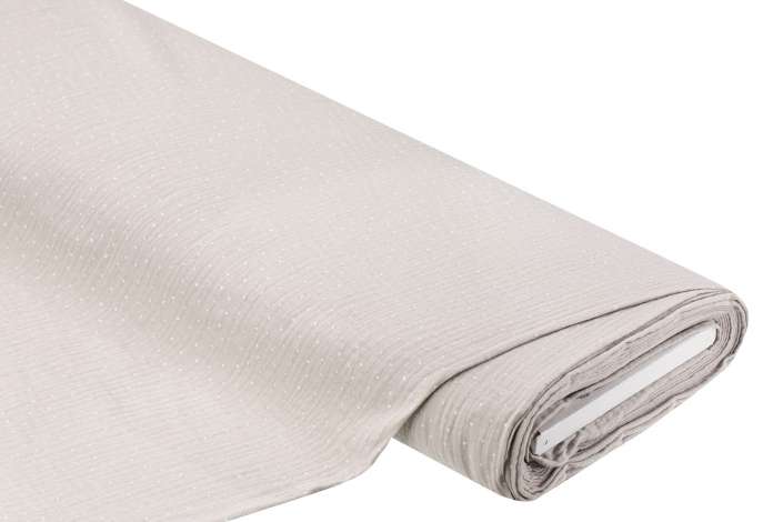 Herrlich weiche Doppel-Gaze "Tupfen", Farbe: greige, Tupfengröße: 2–3 mm Ø, Breite: 130 cm, Gewicht: ca. 120 g/m². Material: 100 % Baumwolle.