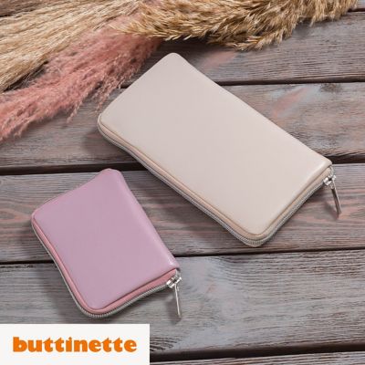 Nähanleitung "Geldbeutel-Set Gerdi", exklusiv von buttinette, eine Anleitung für einen Geldbeutel in zwei Größen inkl. Schnittmuster, Größe Geldbeutel groß: 11 x 21 cm, Größe Geldbeutel klein: 9 x 13 cm, Schwierigkeitsstufe 3/3, Stoffempfehlung: Leder, Lederimitat, Korkstoffe.