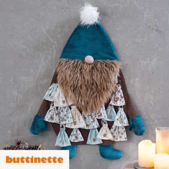 Nähanleitung "Wichtel-Adventskalender", exklusiv von buttinette, Anleitung für einen Adventskalender inkl. Schnittmuster, Größer: 75 x 100 cm, Schwierigkeitsgrad 3/3, Stoffempfehlung: Filz, Fellstoffe, Fleece-Stoffe, Baumwollstoffe.