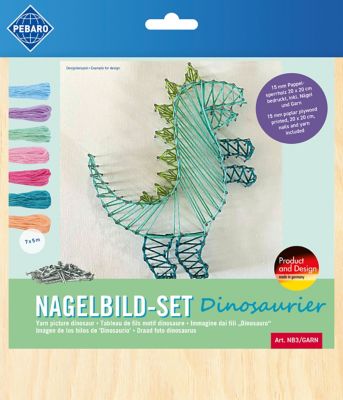 Schritt für Schritt entsteht ein einzigartiges Nagelbild, das nicht nur für Bastelspaß sorgt, sondern auch ein dekoratives Highlight im Kinderzimmer oder Wohnbereich ist. Das Set fördert Kreativität, Konzentration und Feinmotorik – ideal für kleine und große Dino-Fans!