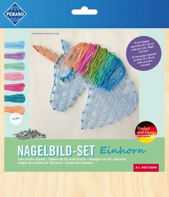 Tauchen Sie ein in die zauberhafte Welt der Einhörner mit unserem Nagelbild-Set Einhorn! Das Set enthält eine stabile Holzplatte, ausreichend Nägel und farbiges Garn – alles, was Sie für Ihr einzigartiges Kunstwerk brauchen. Das vorgedruckte Einhorn-Motiv macht das Gestalten kinderleicht und sorgt für kreativen Bastelspaß.