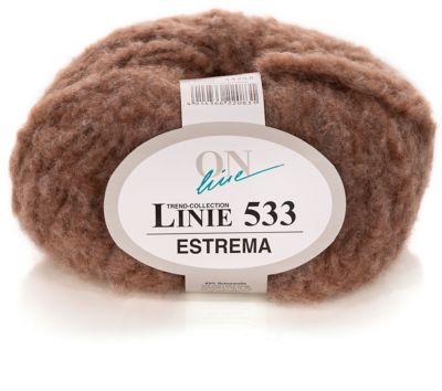 ONline Estrema, Linie 533. Sie lieben schnelle Strickerfolge? Dann kommt das flauschige Volumengarn Estrema wie gerufen! Im Handumdrehen gelingen Ihnen stilvolle Pullover, wärmende Jacken und schicke Accessoires – und das bei wirklich geringem Materialverbrauch. Der feine Materialmix aus Merinowolle und Polyamid macht schon das Stricken zu einem echten Erlebnis; das Tragen Ihrer neuen, außergewöhnlich weichen und fluffigen Strickstücke wird Sie dann restlos begeistern!