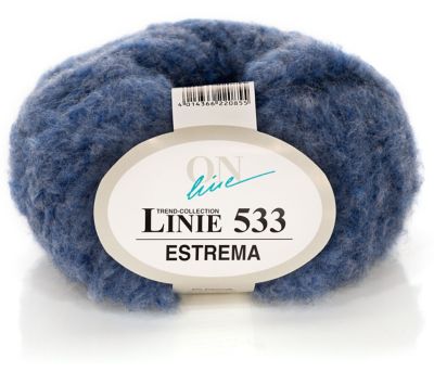ONline Estrema, Linie 533. Sie lieben schnelle Strickerfolge? Dann kommt das flauschige Volumengarn Estrema wie gerufen! Im Handumdrehen gelingen Ihnen stilvolle Pullover, wärmende Jacken und schicke Accessoires – und das bei wirklich geringem Materialverbrauch. Der feine Materialmix aus Merinowolle und Polyamid macht schon das Stricken zu einem echten Erlebnis; das Tragen Ihrer neuen, außergewöhnlich weichen und fluffigen Strickstücke wird Sie dann restlos begeistern!