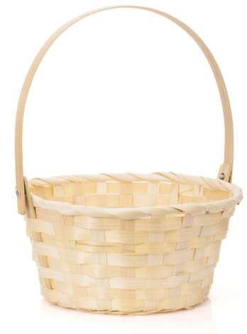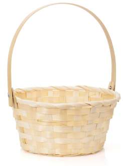 Osterkörbchen aus Bambus, mit klappbarem Henkel, Farbe: natur, Größe: 21 cm Ø, 9,5 cm hoch, Höhe inkl. Henkel: 26,5 cm.