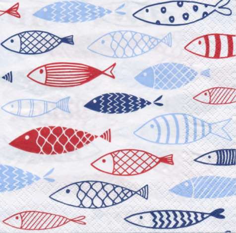 Papierservietten "Fische", 3-lagig, Größe: 33 x 33 cm, Inhalt: 20 Stück.