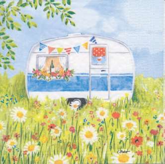Papierservietten "Wohnwagen", 3-lagig, Größe: 33 x 33 cm, Inhalt: 20 Stück.