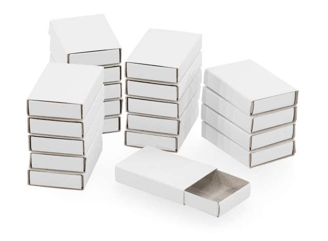 Pappschächtelchen aus stabilem Karton, Farbe: weiß, Größe: 5,2 x 3,6 x 1,5 cm, Inhalt: 20 Stück.