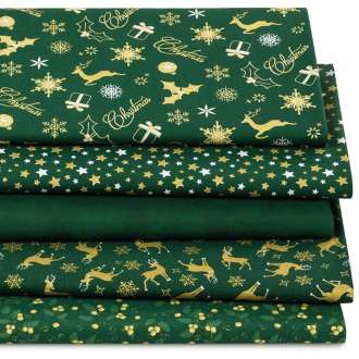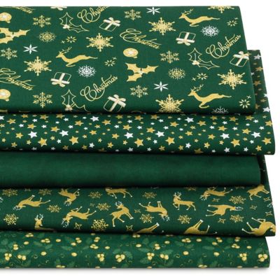 Exklusiv von buttinette: Patchwork- und Quiltpaket "Christmas", Farbe: tannengrün/gold, mit goldenem Glitzerdruck, aus der Quiltserie "Mona", aus besonders feiner, weicher und hochveredelter Baumwolle (Renforcé), Gewicht: ca. 130 g/m². Paketinhalt: 5 verschiedene Muster, wie abgebildet, jeweils 30 cm lang und 75 cm breit. Material: 100 % Baumwolle.
