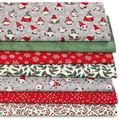 Exklusiv von buttinette: Patchwork- und Quiltpaket "Wichtel", Farbe: grau-color, aus der Quiltserie "Sina", aus besonders feiner, weicher und hochveredelter Baumwolle (Renforcé), Gewicht: ca. 130 g/m². Paketinhalt: 7 verschiedene Muster, wie abgebildet, jeweils 30 cm lang und 75 cm breit. Material: 100 % Baumwolle.