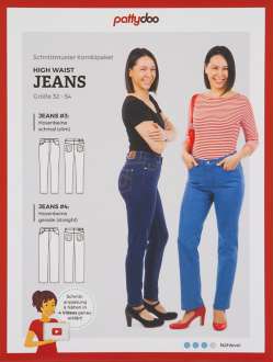 Sie möchten sich eine trendige High-Waist-Jeans nähen? Dann ist dieses pattydoo Schnittmuster die richtige Wahl! Auch wenn Sie noch nicht so viel Näherfahrung haben, führt Sie Ina von Pattydoo mit ihrem Näh-Video Schritt für Schritt zum Näherfolg. Die Jeans ist im klassischen Five-Pocket-Stil mit Eingriffstaschen, Münzfach und Gesäßtaschen konzipiert. Sie wird mit einem Reißverschluss und Hosenknopf geschlossen. Der Bund der High-Waist-Jeans sitzt etwa auf Höhe des Bauchnabels und liegt schön am Körper an; bei der Beinweite kann zwischen enganliegendem Slim Leg und etwas weiterem Straight Leg gewählt werden. Auch wenn das Nähen einer Jeans etwas aufwendiger ist – es lohnt sich, denn Sie werden mit einer einzigartigen, perfekt sitzenden Lieblingsjeans belohnt!
