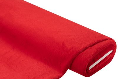 Plüschstoff "Pia", Farbe: rot, leicht querelastisch, mit weicher Rückseite, Florhöhe: 5 mm, Breite: 150 cm, Gewicht: ca. 350 g/m². Material: 100 % Polyester.