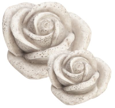 Polyresin-Rosenköpfe, mit Steckdraht, Farbe: creme, Größen: 5 cm und 7 cm Ø, Inhalt: 2 Stück.