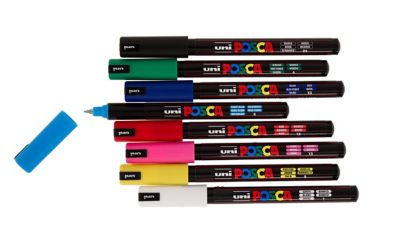 POSCA Marker, extra fein, Strichstärke: 0,7 mm, auf Wasserbasis, für fast alle Oberflächen geeignet. Inhalt: 8 Stifte, Farben: weiß, gelb, pink, rot, dunkelblau, hellblau, grün und schwarz.