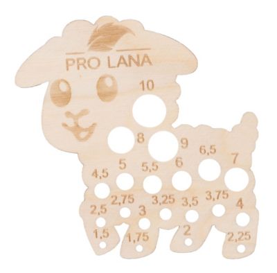 Pro Lana Nadelmaß "Schaf", für Stricknadeln von 1,5–10 mm Stärke, Farbe: natur, Größe: ca. 8,2 x 8,4 cm. Material: geschliffenes Holz.