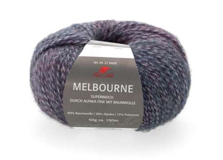 Pro Lana Melbourne, blau. Wärmend, weich und wunderschön: So lässt sich unser neues Garn Melbourne von Pro Lana wohl am besten beschrieben. Die fluffige Struktur von Alpaka gepaart mit weicher Baumwolle und strapazierfähigem Polyamid macht das Garn zu einem Allrounder für jedes Strickprojekt. Aus Pro Lana Melbourne stricken Sie handgemachte Teile, die robust, geruchsneutral, thermoregulierend und langlebig sind und sich an die Haut anschmiegen, ohne zu kratzen. Durch das Verspinnen zweier unterschiedlich gefärbter Garne entsteht beim Stricken ein leicht melierter Look mit dezentem Farbverlauf. Kreieren Sie einzigartige Pullover, Jacken, Shirts, Schals, Mützen und vieles mehr!