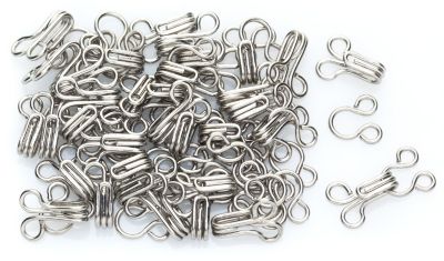 Prym Haken und Augen zum Annähen. Diese Verschlüsse lassen sich vielseitig verwenden und beinahe unsichtbar einnähen. Sie sind ideal geeignet für leichtere Bekleidung wie Blusen, Kleider, Röcke, Hosen, Mieder u.v.m.