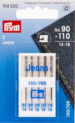 Die Jeans-Nadeln von Prym sind besonders stabil und somit ideal geeignet für Jeans-Stoffe und andere feste Webstoffe wie Köper, Canvas, Stoffe für Arbeitskleidung oder auch Kunstleder. Wählen Sie die Nadelstärke je nach Ihrem Stoff aus, z.B. 90 für dünnen Hemdenjeans, 110 für feste Denim-Qualitäten.