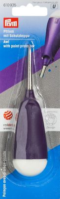 Prym Pfriem zum Stechen und Weiten von Löchern mit ca. 1 - 5 mm Lochgröße, mit Schutzkappe. Farbe: pflaumenblau/weiß, Länge: 12 cm.