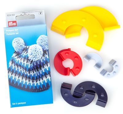 Prym Pompon-Set, mit 4 Pompon-Schablonen für Bommel in den Größen 3 cm, 4,5 cm, 5,5 cm und 9 cm. Material: Kunststoff. Inkl. Arbeitsanleitung.