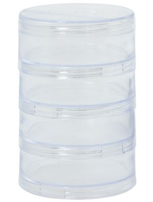 Prym Stapeldosen aus Kunststoff, transparent. Größe: 70 mm Ø, Höhe insgesamt: 10 cm, Inhalt: 4 Stück, ohne Inhalt.