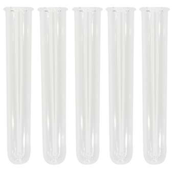 Reagenzgläser, Länge: 12 cm, 2 cm Ø, Inhalt: 5 Stück, aus Acryl mit Rand.