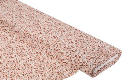 Exklusiv von buttinette: reiner Baumwolljersey "Blümchen", Farbe: weiß-color, leicht querelastisch, Motivgröße Blumen ca.3–12 mm Ø, Breite: 160 cm, Gewicht: ca. 220 g/m², Einlaufwerte: 3–5 % in Länge und Breite. Material: 100 % Baumwolle.