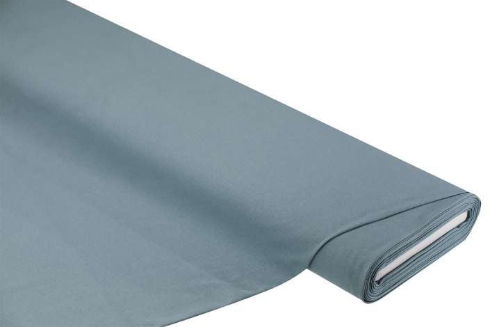 Exklusiv von buttinette: reiner Baumwolljersey "Jola", Farbe: jeansblau, querelastisch, Breite: 160 cm, Gewicht: ca. 220 g/m², Einlaufwerte: 3–5 % in Länge und Breite. Material: 100 % Baumwolle.