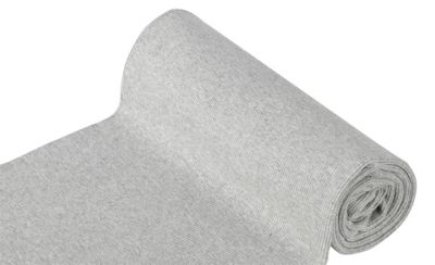 Hochwertiger Rippen-Bündchenstoff "Comfort" als Schlauchware, Farbe: hellgrau-melange, mit feiner Rippe (Doppelripp), für Arm-, Bund- und Beinabschluss. Als 0,5m- und 1m-Coupon erhältlich. Breite: 45 cm (im Schlauch, d. h. aufgeschnitten 90 cm), Gewicht: ca. 340 g/m². Material: 93 % Baumwolle, 7 % Elasthan.