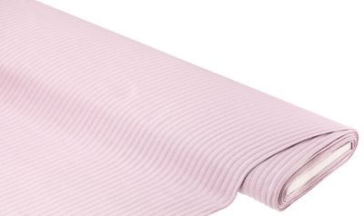 Breit gerippter Rippjersey, Farbe: altrosa, bi-elastisch, Rippenbreite: 5 mm, Rippen längs verlaufend, Breite: 145 cm, Gewicht: ca. 205 g/m². Material: 95 % Baumwolle, 5 % Elasthan.