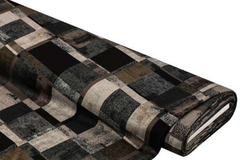 Romanit-Jersey "Karo", Farbe: grau/taupe/schwarz, querelastisch, Breite: 150 cm, Gewicht: ca. 240 g/m². Material: 55 % Polyester, 45 % Viskose.
