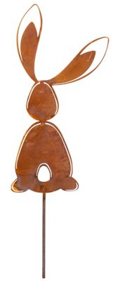 Rost-Hase aus Metall, Farbe: braun, Größe: 25 cm, Stablänge: 11,5 cm.