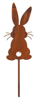 Rost-Hase aus Metall, Farbe: braun, Größe: 15 cm, Stablänge: 11 cm.